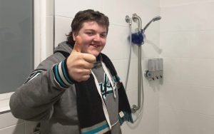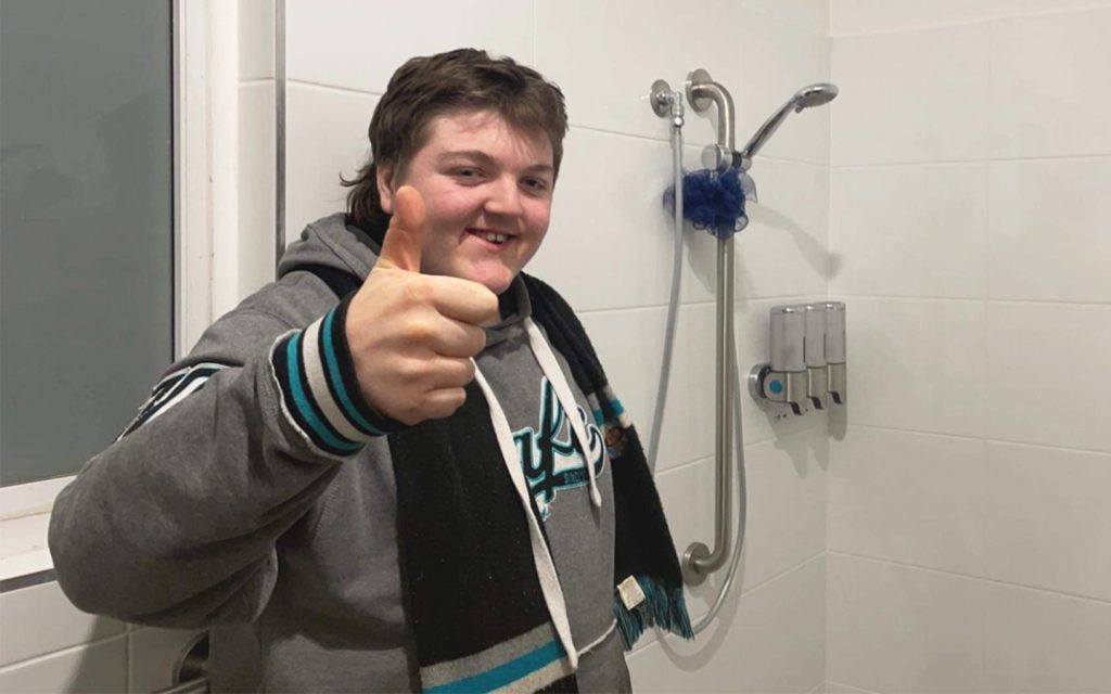 They call him “Mr Music”; 16-year-old Mack loves all things music. This includes an amazing ability to answer all sorts of music trivia questions. From the Beatles to Aretha Franklin, ACDC and many more icons, there isn’t much that Mack doesn’t know about music. And now that Mack has new-found independence in his modified bathroom, he’s singing all his favourite tunes in the shower!