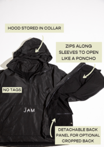 We’ve redesigned our original wheelchair accessible jacket! Our block jacket has been designed to be easily put on and taken off whilst seated (just like our original jacket). However, it now comes with a removable back-panel so that it can be full length at the back for those who wear it in a standing position.