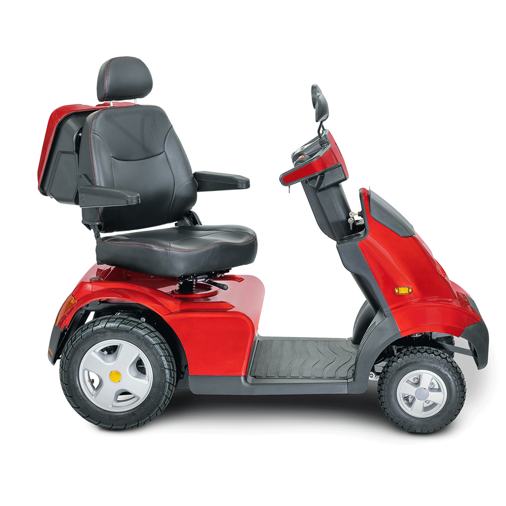 Unparalleled comfort and features for serious scooter users. The Afiscooter S4 is winner of the prestigious Red Dot Design Award. It offers an impressive driving range, an ergonomic design for a noticeably more comfortable ride, a programmable electronic controller, LCD control screen and LED headlights. Furthermore, the Afiscooter S4 has a fully adjustable tiller, full suspension and a shock absorbing steel frame. The four wheel suspension and steering systems provide a pleasurable car-like driving experience for long distances.