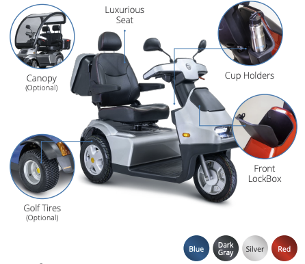 The Afiscooter ( Breeze ) S4 adds modern styling and a number of luxury upgrades for the most discerning scooter user. These include a bright LCD display and secure lockable rear storage case.