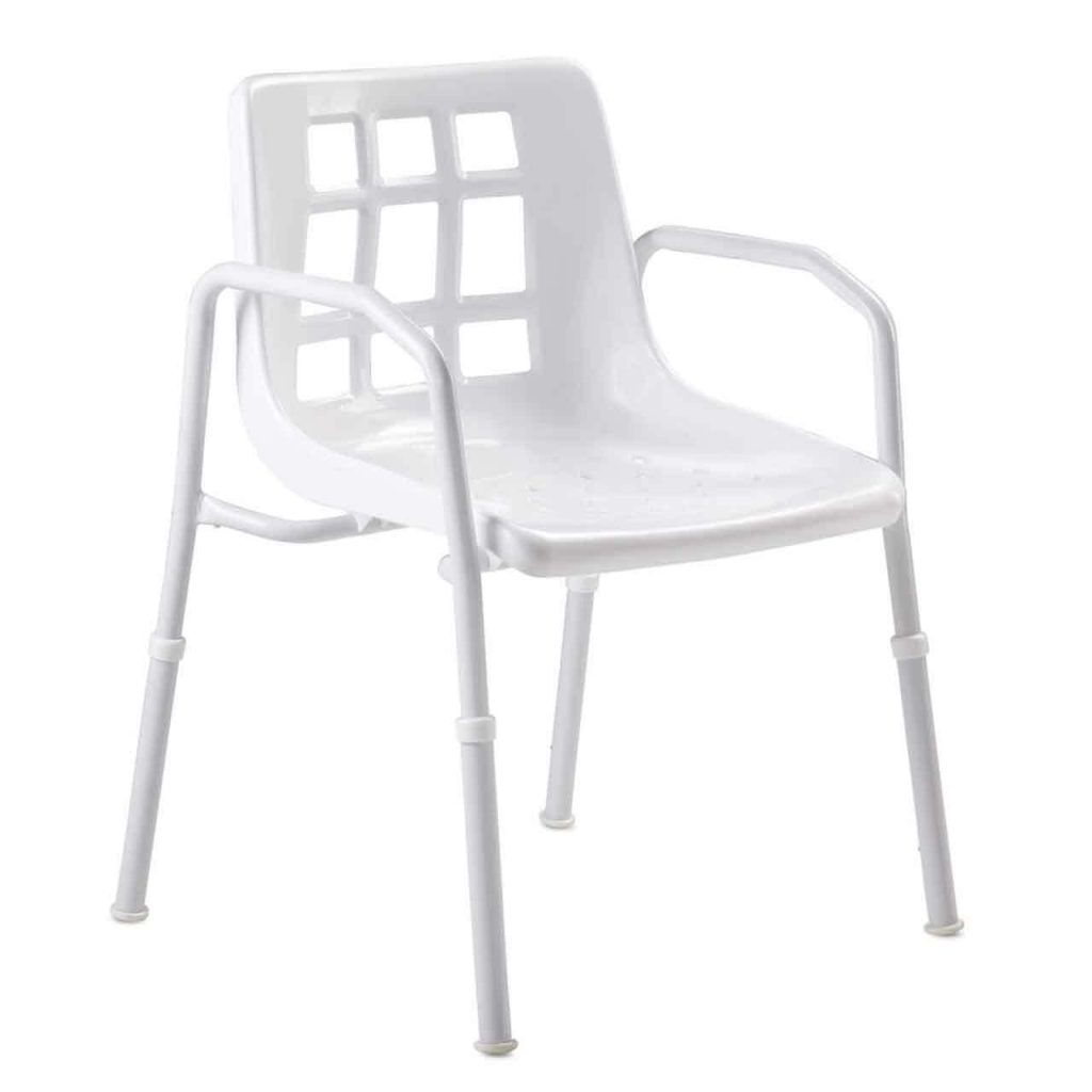 | Shower Chair with Arms – Aluminium | 400 mm | 440 mm | 375 – 550 mm | 200 kg | 3.1 kg |