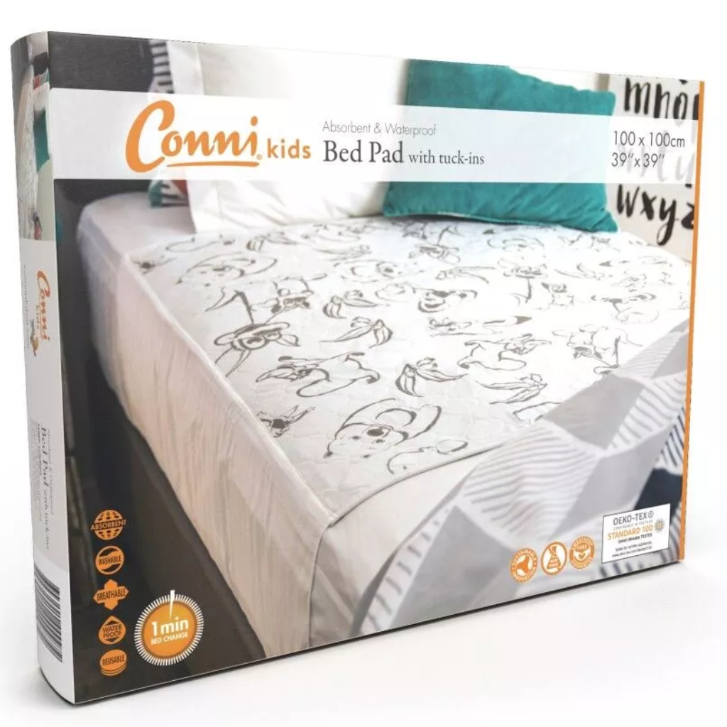Say goodbye to the days of daily cycles of wet, wash, dry and repeat with your sheets. Conni absorbent and waterproof bed pads with tuck-ins assist in managing incontinence, bedwetting and toilet training. Our Conni Bed Pads with tuck-ins are designed to hold at least three full adult bladder voids over an eight hour period. They are the perfect addition to any single or king-single mattress that requires full void protection.