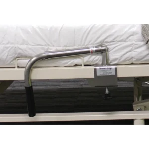 The StandEzy Hook Handle Model is a robust and stable support device, designed exclusively for compatibility with the Alrick bed range. It provides residents with complex mobility challenges and enhanced assistance to achieve a sitting position, navigate to the edge of the bed, and then stand up to transfer into a chair seamlessly.