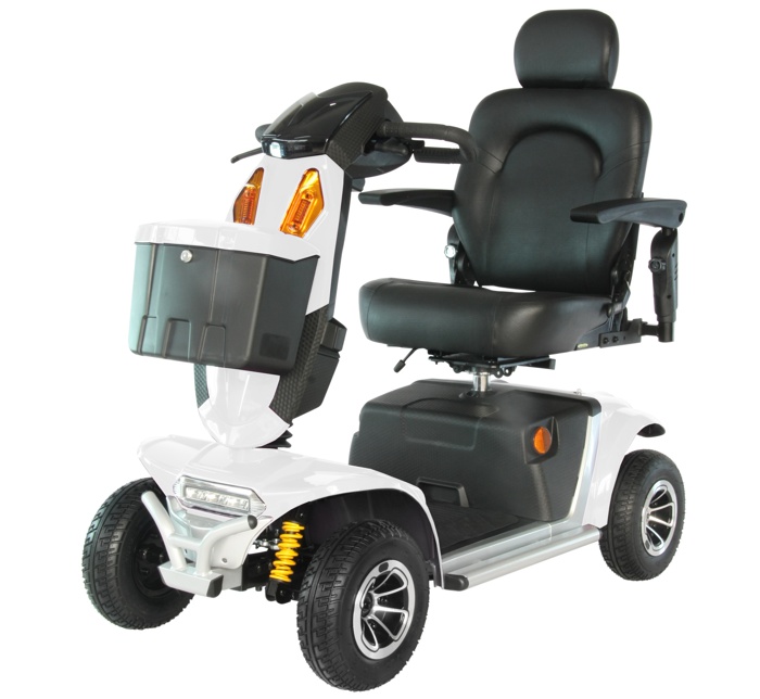 The Top Gun Blazer is the clever choice with all the latest safety features, offering a super comfortable ride with double sprung suspension as standard fitment. The stylish design includes a lockable front carry box to keep your treasures safe. Robust yet agile, this class leading scooter is backed by the quality guarantee of Top Gun Mobility’s 5 Year Warranty.