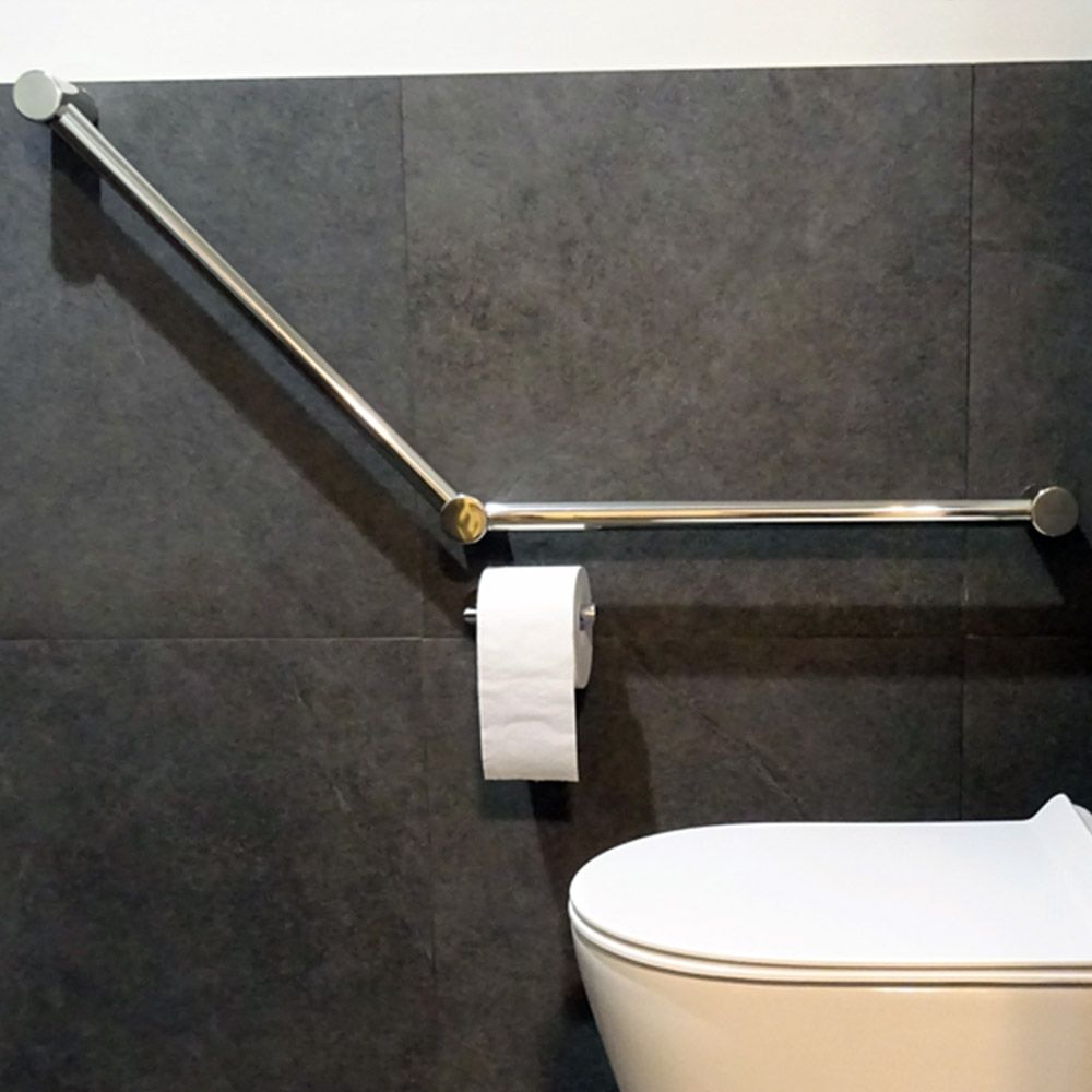 The Avail Calibre Angled Grab Rail complements modern bathroom designs with its minimalist styling.