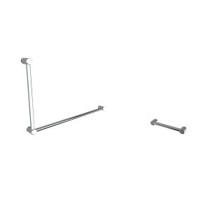 The Calibre Mod Toilet Grab Rail Set (90 degree) includes an angled rail for mounting on the side wall and a 300mm rail for mounting on the back wall.