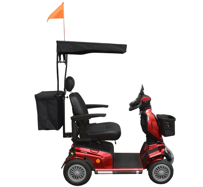 Additional canopy and bag unit with flag for Top Gun Scooters. Single mounting point for all items rather than buying separate needing additional mounting points, this system is easy to install and economical.