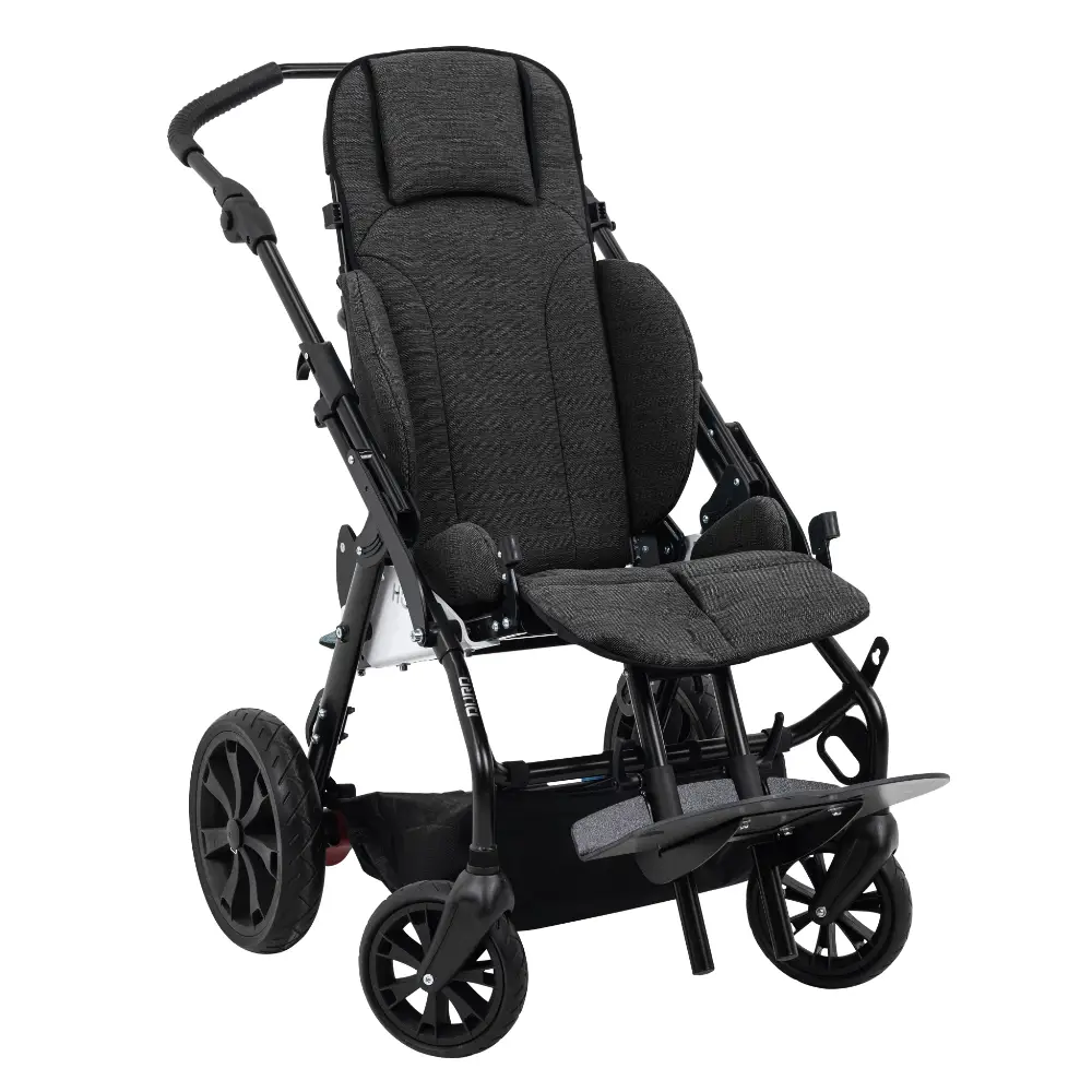 The Duro Rehab Stroller in Black Aluminium is a sophisticated and highly functional mobility solution designed for children with special needs. Combining durability, comfort, and style, this stroller is engineered to meet the rigorous demands of daily use while providing optimal support and positioning for children requiring additional rehabilitation support. Its sleek black aluminium frame not only offers strength and stability but also ensures the stroller is lightweight and easy to maneuver.
