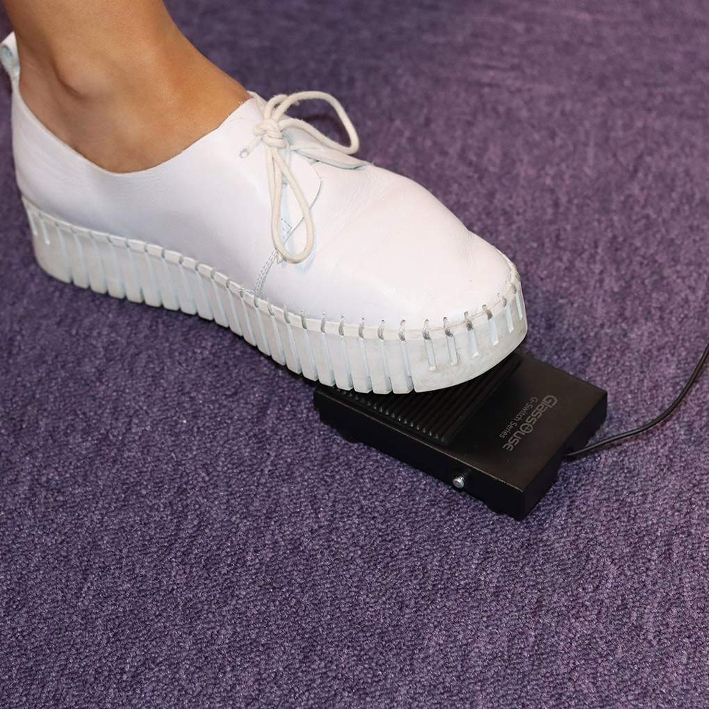 The Foot Switch is a highly sensitive mechanical switch which is controlled by your foot. This switch can detect and is activated by different amounts of pressure. It can connect to any device with a mono 3.5mm jack connector plug for external switch controls.