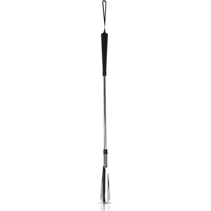 The Homecraft Chromed Shoe Horn is a luxury, chromed metal, long-stemmed shoe horn. The shoe horn blade is mounted on a spring to allow it to bend in relation to the handle when levering on shoes. The comfy plastic handle is easier to grip. Use the loop to hang the shoehorn in a closet when not in use.Use this durable metal shoe horn to protect your shoes from unnecessary wear. It helps prevent your shoe backs from being crushed.