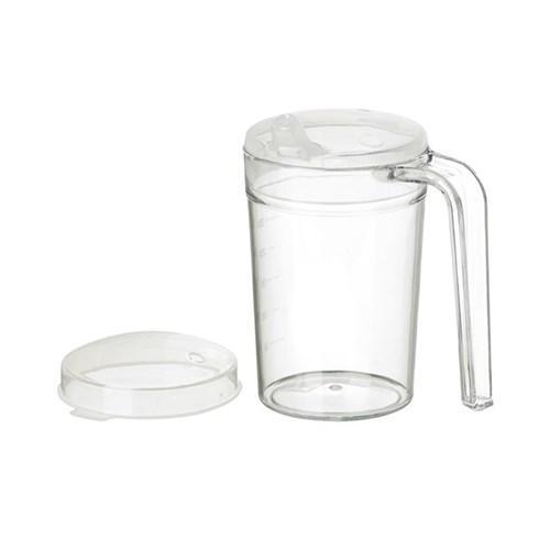 This attractive mug is made from a tough, shatterproof material to prevent accidental breakage. The liquid consumption is easily measured by the marked gradations and the mug is supplied with a choice of lids. The spout lid helps with drinking and the recessed spill-proof lid avoids splashes.