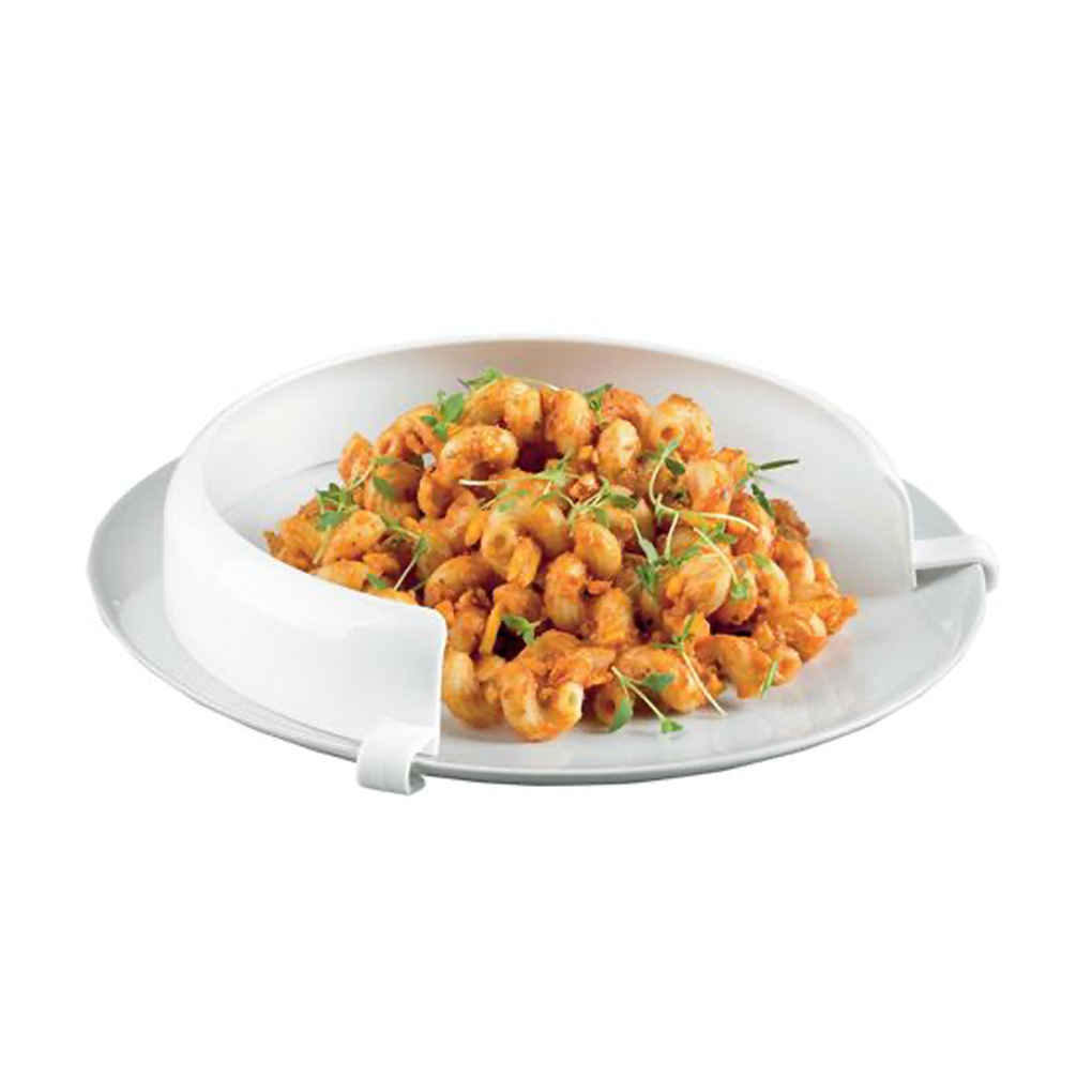 Three clips attach it to the rim of the plate to create a high inward sloping face to help with food collection and prevent spillage.