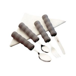 This Lightweight Foam Handled Cutlery Set is made from stainless steel and has contoured foam handles that are ribbed to make them easier to grip to aid those with a weak or painful grip.