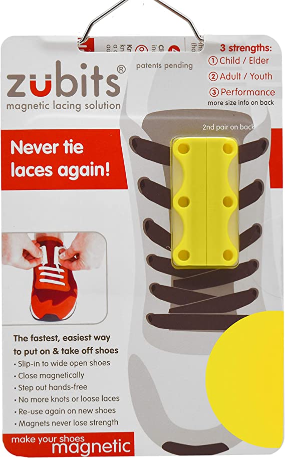and function weakness can make laces impossible to tie. Once you have got these on your shoes there is no need to tie a lace again! Just attach Zubits magnetic closures to your own shoelaces (on sneakers or casual shoes) and let the magnets do the “tying”.