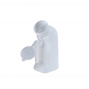The Male Urinal with Cover has a easy grip open handle. Hangs on bed rail.