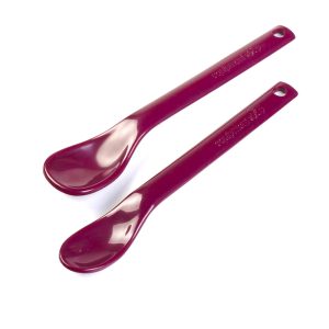 The Maroon Spoons have a flattened bowl which helps to control food portions made of ABS plastic and is available in small or large size.