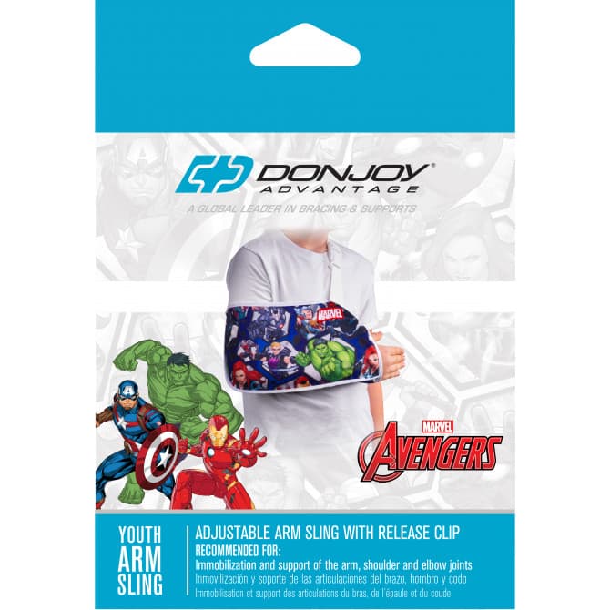 Finally, a youth arm sling that’s comfortable and fun! The DonJoy Advantage Youth Arm Sling Featuring Marvel provides mild arm support and a Marvel Super Hero design. Constructed of cotton-polyester blend, the kid’s arm sling envelope aids in a comfortable fit while the adjustable strap allows for a personalised fit. Easy to put on, the Youth Arm Sling can be worn on the right or left arm. Choose your favourite Marvel character design: The Hulk, Captain America, or Iron Man.