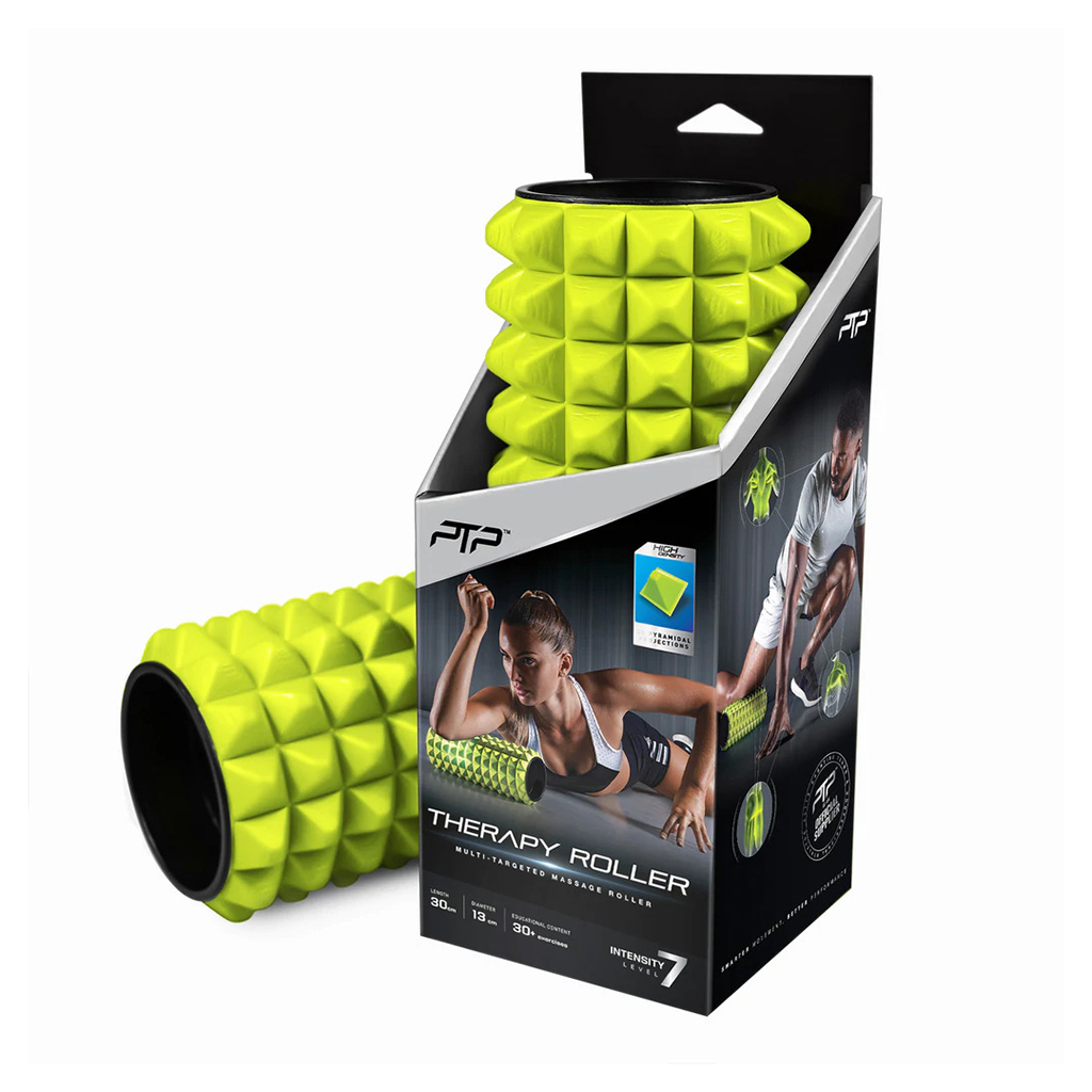 Designed to massage and release sore muscles and enhance muscle recovery, the PTP Massage Therapy Roller is suitable for both pre and post training use. Featuring a spikey texture for deep tissue massage and trigger point release, the PTP Massage Therapy Roller can be used on the back, shoulders, glutes, TFLs, hamstrings, calves, hips and more. The PTP Massage Therapy Roller is suited to users seeking a moderate massage experience with a low pain tolerance threshold.
