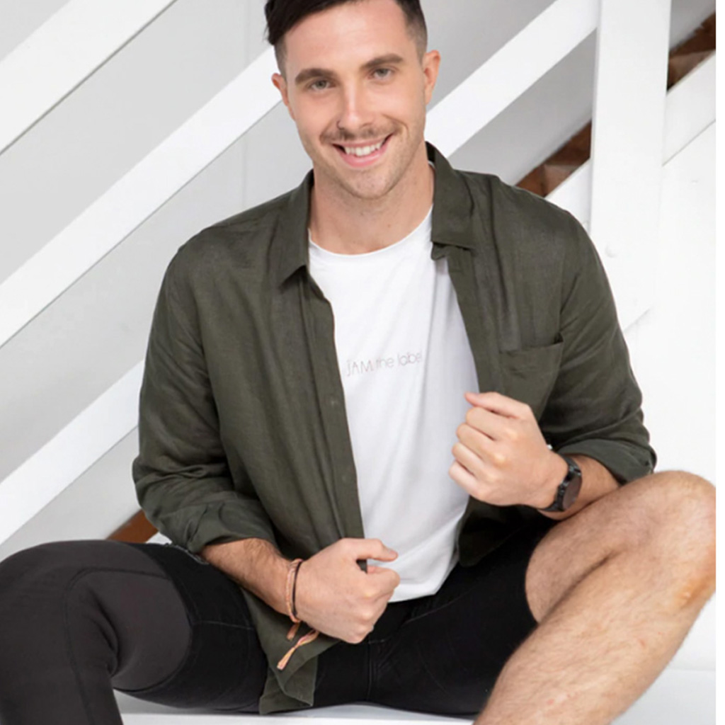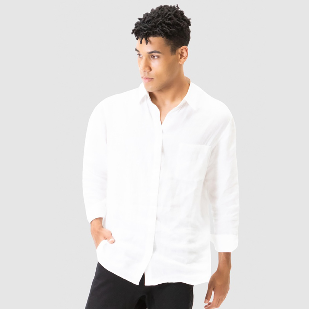 A classic linen shirt with magnetic closures instead of buttons.