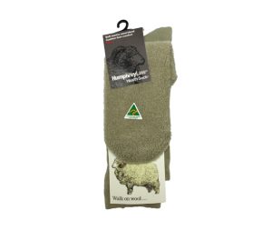 This sock has a pure fine merino wool terry-knitted cushion sole which provides extra insulation, resilience, and softness underfoot. The leg of the sock is a fine wool blend so looks like a normal fine business sock. The outside of the foot of the sock is nylon to provide longer wear. A Health Sock® with no tight elastic top.