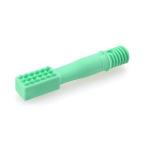 The Mini Tip to fit Z-Vibe Grabber Chewy Tube features a rectangular tip that is bumpy on one side, striated on the other, and smooth along the edges. These textured surfaces provide tactile input, awareness, and sensation.