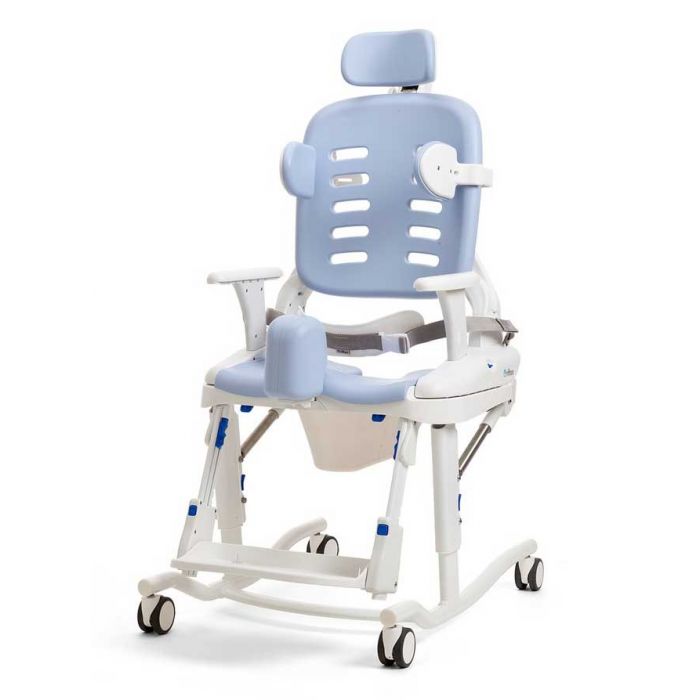 This Hygiene Toileting System accommodates toileting, showering and bathing and can be configured to fit the needs of the user. The HTS comes with a standard seat and back, three armrest height options and a choice of base or mounting bar.
