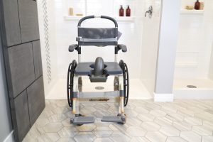 The ShowerBuddy Roll-In Solo brings all the functions of other roll-in shower products to users with mobility to use a wheelchair. It is also a fully functioning toilet chair that fits over most standard commodes.