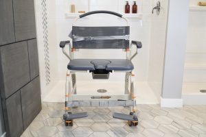 The ShowerBuddy Roll-In XXL has been developed for individuals with standard roll-in showers and attendant home care. Supports up to 200 kg and has a seat width of 660mm and is also an effective toilet chair and fully equipped to use as a commode.