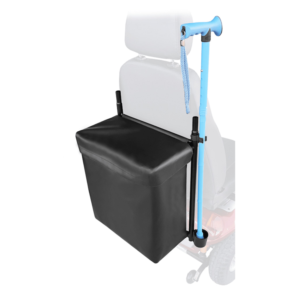 The Redgum Bag Carrier is a metal frame built to fit behind your Shoprider scooter, including a large waterproof vinyl bag that sits on top of the frame. This makes shopping much easier as it is easily accessible, with more storage space.