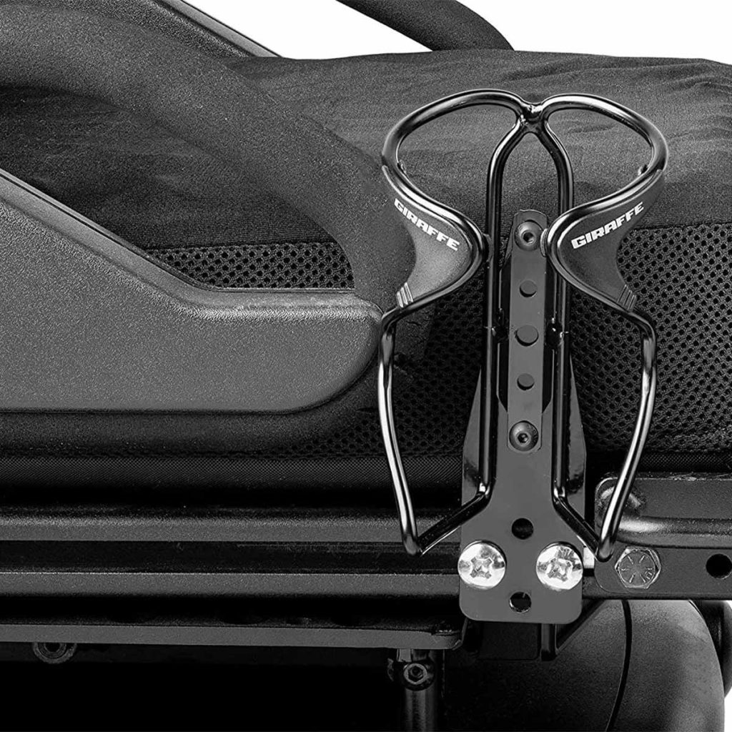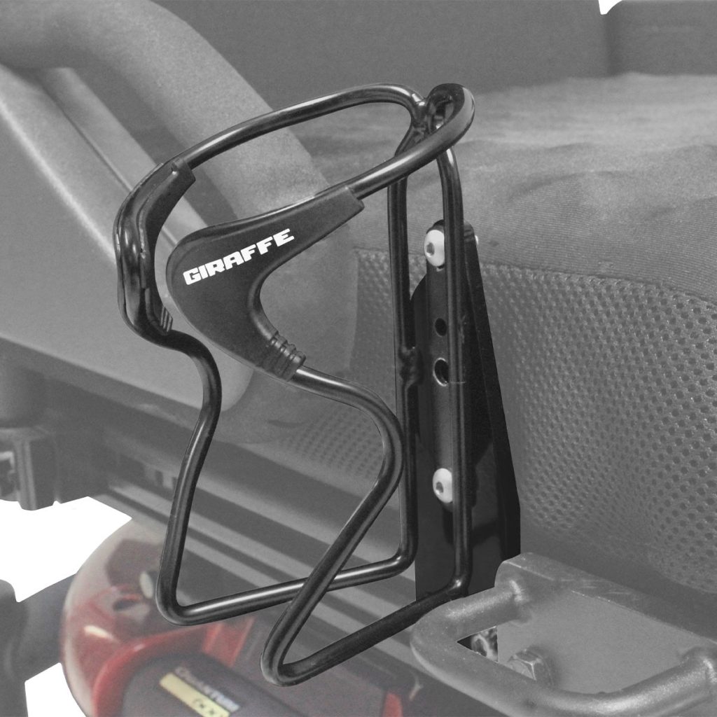 This bottle holder is designed to hold your Giraffe Bottle (and other bottles) securely to wheelchairs with rail mounts from Quantum and Permobile, and others with similar rails. Since bottle holder is aluminium it can be adjusted to hold larger bottles. Includes hardware to mount to rails. Not designed to be repeatedly adjusted.
