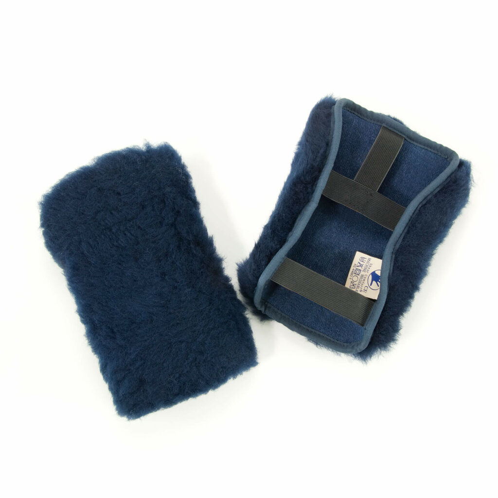 Shear Comfort Foot Plate Protectors are used on foot plates of a wheelchair which can be hard and unforgiving on the skin. The soft wool, which is made from a high-density weave, gives a soft comfort feel to the skin. Elastic straps hold the pads in place.