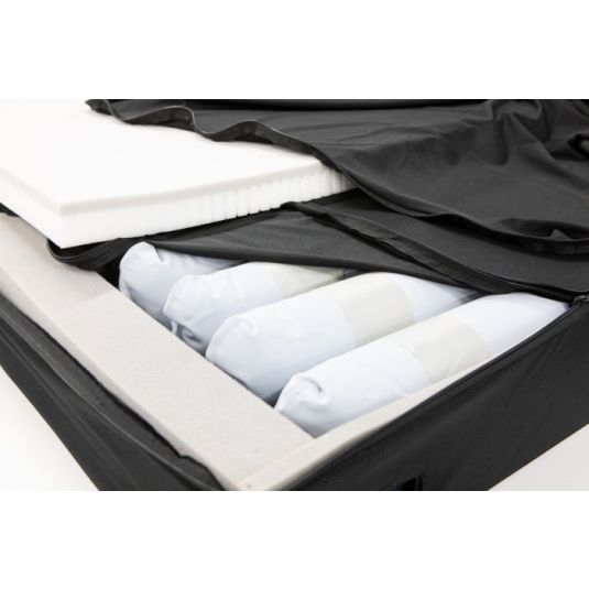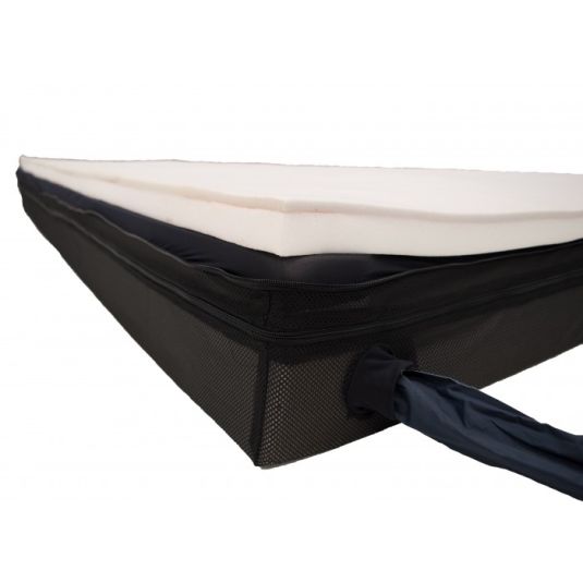 - Firm Foam Base Layer: This layer offers protection to the air system from the bed base and ensures patient safety in the event of a prolonged power outage.